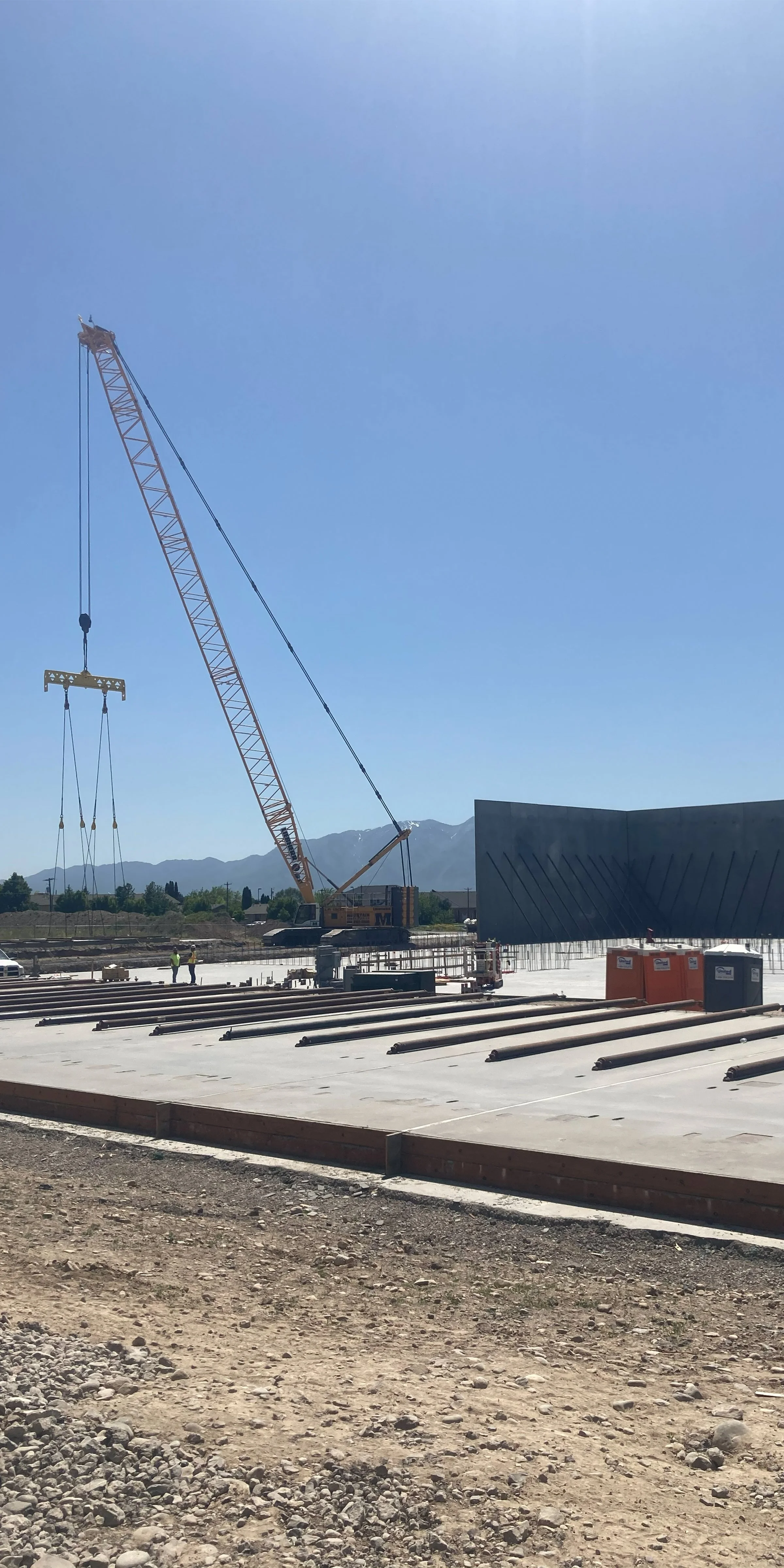Tilt-up panel construction depends on coordinated crane operation, slab prep, embed placement, and strict timing.